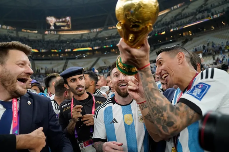 不過據阿根廷《號角報》報道,這張經典照片的背後隱藏著一個小烏龍,梅西手中大力神杯其實是一對阿根廷夫婦帶到卡塔爾的贗品,比賽結束後被傳遞到了球場中 ,最後陰差陽錯來到了梅西手上 。
